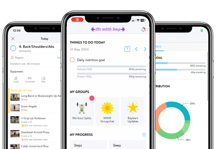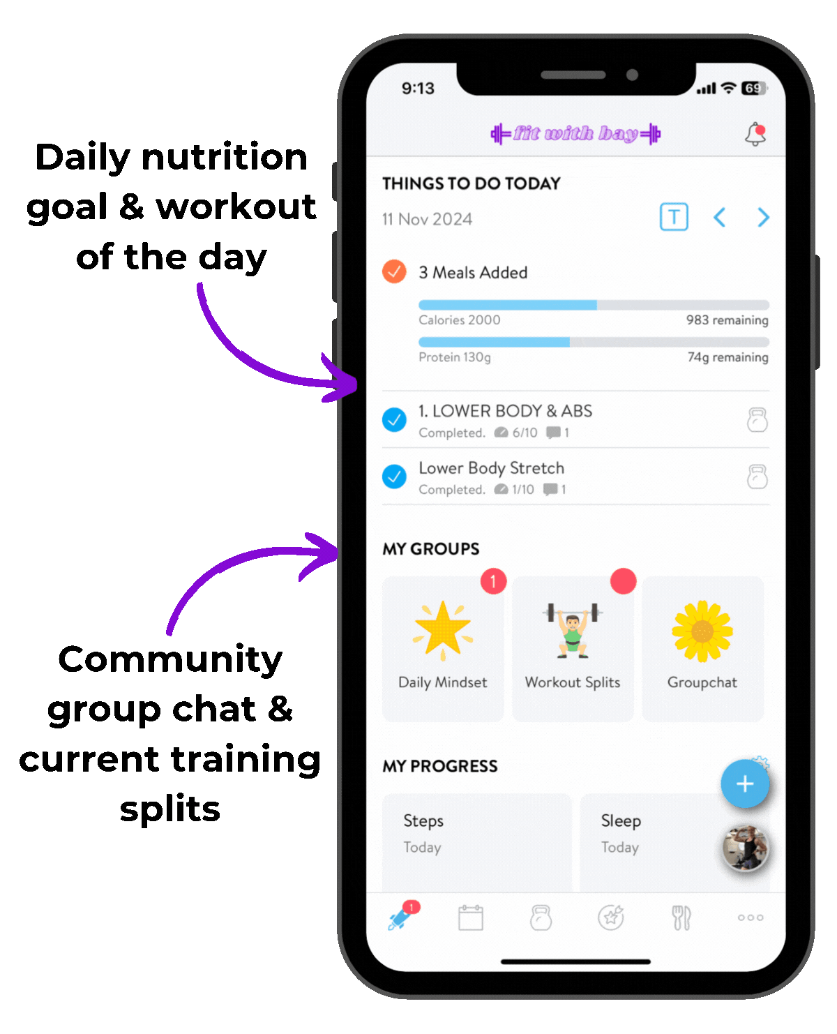 ✅ Access to the fitwithbay app to track your workouts, nutrition, cardio, and progress