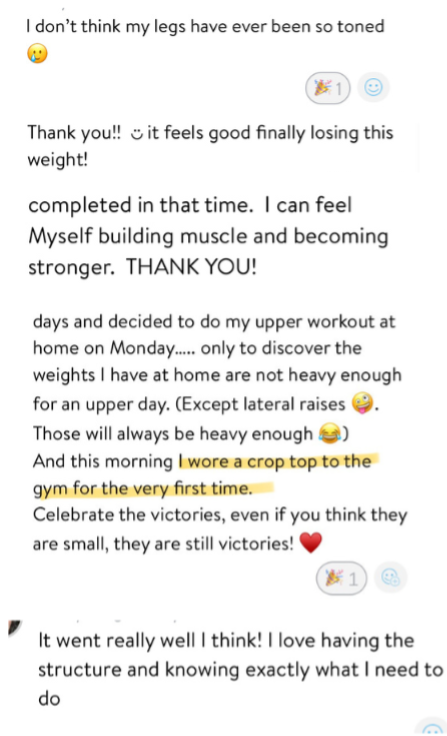 If you have questions on nutrition you can ask them in the group chat OR you can check out the New You 6-Week Challenge for more support with dieting, plateaus, and making dieting easier.