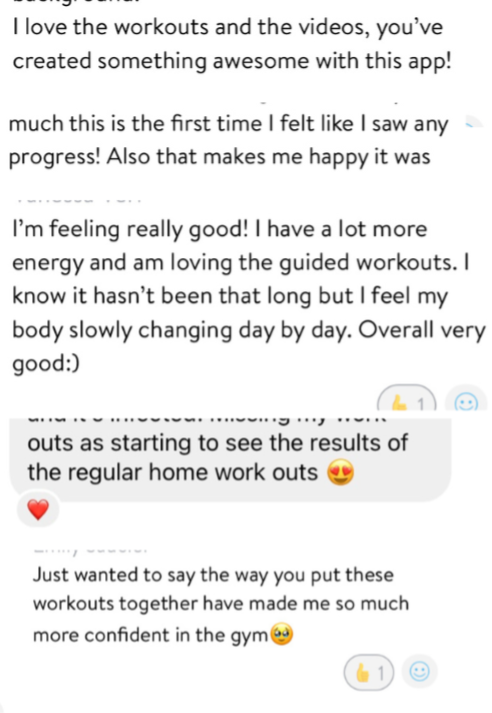 Home workouts take around 20-30 minutes (you get to choose how long your workouts are!)